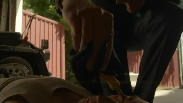 DeleteI think its funny how if you look closely at the picture of Burnt Travis a large beam "fell" with a nail piercing the exact spot Dexter stabbed him…lol