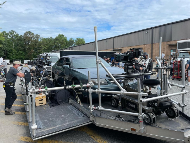 We can confirm that he was actually shooting NBC pilot "Dangerous Moms" where he played a character named Victor, and the location was actually the city of Atlanta in Georgia.